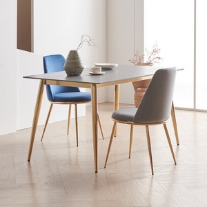 라로퍼니처 브릭스 1400 포세린 통 세라믹 4인 식탁 세트 골드 프레임 테이블, 그레이, 식탁+의자2, 네이비2개